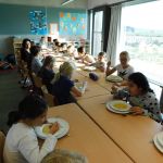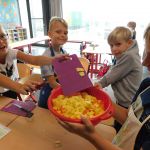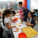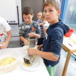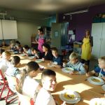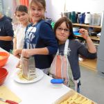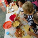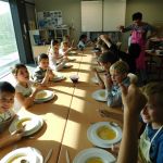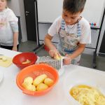 wurden gemeinsam mit den Bromer Landfrauen Frau Keil und Frau Streckel drei Kartoffelgerichte gekocht: Es gab Kartoffelsuppe, Kartoffelpuffer mit Apfelmus sowie Pommes Frites mit zwei verschiedenen Dips aus Kräutern und Tomaten.