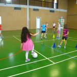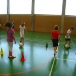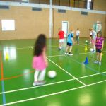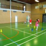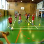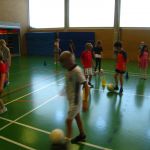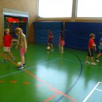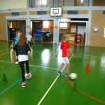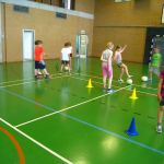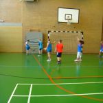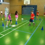 Unsere Klasse beschäftigt sich gerade mit dem Thema Fußball. Im Sportunterricht lernten und übten wir das Dribbeln, das Passen, das Schießen und Ballannehmen. Wir lernten auch was der Vollspann, der Innenriss und der Außenriss ist. Wir erfuhren, dass man mit der Picke besser hoch schießen kann. Dann kam das DFB-Mobil. Echte Trainer haben mit uns eine Stunde lang trainiert. Im Kunstunterricht malten wir Fußballer für unsere Fensterdeko. Anschließend sollten wir als Hausaufgabe Länderflaggen basteln. In Musik beschäftigen wir uns auch noch mit dem Thema Fußball. Die Fußball-WM kann kommen!