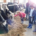 Dort erhielten die Schülerinnen und Schüler zunächst ein paar Informationen über die Haltung von Milchkühen, z.B. wie viele Kühe Bauer Meyer im Stall hat, wie viel Liter Milch die Kühe geben und welches Futter sie bekommen. Dann konnten die Kinder die Kühe und auch die Kälbchen genauer ansehen und auch das Melken direkt auf dem Melkstand miterleben.
