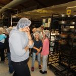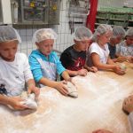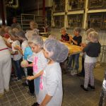 Sie drehte mit uns eine große Runde durch die Bäckerei und erklärte uns viele interessante Geräte. Es gab riesige Mixer und einen Kühlraum. Wir haben eine Brötchenmaschine gesehen. Da sind in unterschiedlichen Abständen Teigwürste auf ein Band geplumst. Das fanden wir ziemlich lustig.