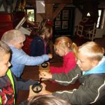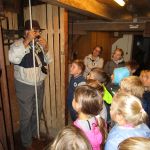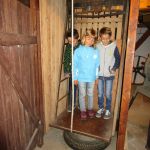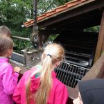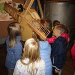 Er zeigte uns das hölzerne Wasserrad und erklärte uns, wie die Mühle funktioniert. Wir durften den Mahlstein selber einmal drehen, Körner mit einer Kaffeemühle zu Mehl mahlen und dieses sieben. Die Fahrt mit dem Müllerfahrstuhl war fetzig.