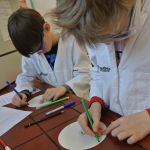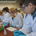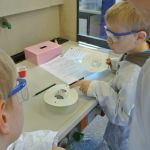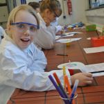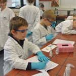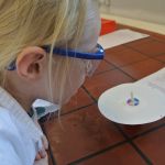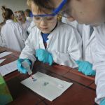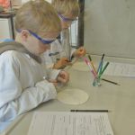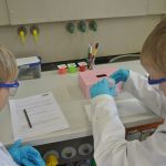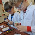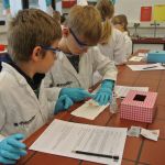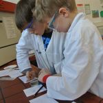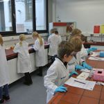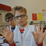 Zuerst mussten die Nachweisversuche wie z.B. die Farbchromatografie erlernt werden und auch die Nachweismittel wie z.B. Wasserstoffperoxid und Luminol zum Nachweis von Blut lernten die jungen Naturforscher kennen. Auch das Vergleichen von Fingerabdrücken war sehr aufschlussreich. Am Ende konnte der Täter anhand der Nachweise eindeutig überführt werden!