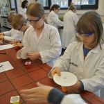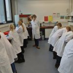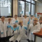 Die beiden Naturforscher-AGs fuhren Ende Januar 2018 mit der Bahn zum Agnes-Pockels-Labor an der TU Braunschweig, um dort in einem richtigen Labor zu arbeiten. Nachdem die aufregende Fahrt mit Bahn und Straßenbahn absolviert war, gab es ein Gruppenfoto vor der Universität.