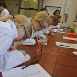 Also wurden fix die Laborkittel und Schutzhandschuhe angezogen sowie die Schutzbrillen aufgesetzt und los ging es. Zunächst lernten wir die Gefahrenzeichen kennen.
