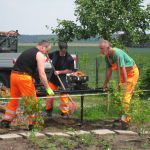Dann begann das Säen und Pflanzen. Jeder brachte etwas Saatgut mit und auch neue Erdbeeren, Himbeeren, Johannisbeeren und Blaubeeren wurden gepflanzt. Und auch der Barfußfühlpfad wurde nach der langen Winter- und Baupause wieder in Ordnung gebracht.