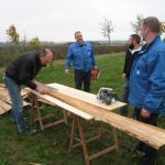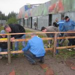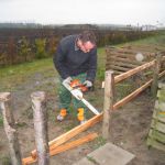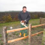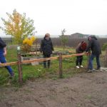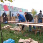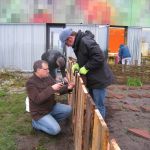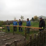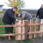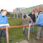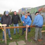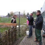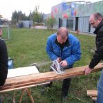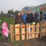 Nach den Sommerferien wurden dann die Pfähle für den neuen Zaun gesetzt. Dabei halfen Herr Lacü und unsere Bauhofmitarbeiter. Herr Lacü lieferte gleich auch Bohlen für den Zaun, die dann im Herbst von zahlreichen Vätern angebaut wurden.