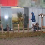 Über den Sommer hatten die kleinen Schulgärtner und Schulgärtnerinnen auf der Westseite des Gartens bereits einen tollen Weidenzaun geflochten. Auch dabei halfen einige Mütter, die immer wieder zur AG-Zeit kamen und die Kinder anleiteten.
