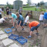 Wir pflanzen ein Rondell aus Buchsbaum, in dem wir im Herbst eine Frühblüher-Uhr anlegen wollen. An dieser können die 2. Klassen im kommenden Jahr das Erscheinen der Frühblüher beobachten. Wir sind gespannt, ob und wann sie zu sehen sind: Krokusse, Schneeglöckchen, Märzbecher, Narzissen, Tulpen, Perlhyazinthen und Hyazinten.