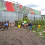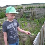 Die Beete werden neu eingerichtet, im Sinne der Fruchtfolge verlegen wir den Kartoffelacker in ein anderes Feld, ebenso das Gemüse. Mit den Steinplatten unterteilen wir die einzelnen Beete. Und auch der Kompost aus dem letzten Jahr wird zum ersten Mal umgesetzt. Dabei entdecken wir so allerlei Tiere.