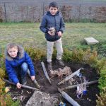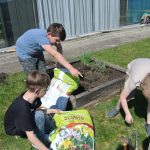 Nachdem auch der März noch recht winterlich war, haben wir erst im April nach den Osterferien die Beete angelegt und Kartoffeln, Zwiebeln, Kürbisse, Zucchini und Rharbarber gepflanzt bzw. gesät. Der viele Regen hat alles gut wachsen lassen und so haben wir in den AG-Stunden auch viel zu tun mit dem Jäten des Unkrauts.