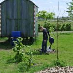 Einzelne Bäume aus unserer kleinen Baumschule haben wir auf den Schulhof ausgepflanzt. Wir gießen sie regelmäßig, damit sie gut anwachsen und bald Schatten spenden. Im Mai haben die Erdbeeren und die Beerensträucher sehr schön geblüht und Früchte angesetzt, so dass wir uns schon auf eine reiche Beerenernte freuen…