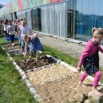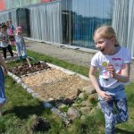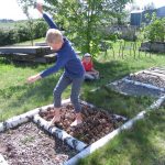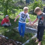 Nachdem auch der März noch recht winterlich war, haben wir erst im April nach den Osterferien die Beete angelegt und Kartoffeln, Zwiebeln, Kürbisse, Zucchini und Rharbarber gepflanzt bzw. gesät. Der viele Regen hat alles gut wachsen lassen und so haben wir in den AG-Stunden auch viel zu tun mit dem Jäten des Unkrauts.