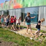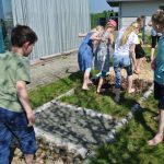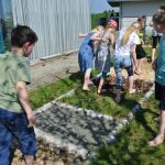 Mitte April wurde es so warm, dass der Barfußpfad in den Pausen mit Begeisterung von allen Schülerinnen und Schülern ausprobiert werden konnte.