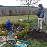 Nachdem auch der März noch recht winterlich war, haben wir erst im April nach den Osterferien die Beete angelegt und Kartoffeln, Zwiebeln, Kürbisse, Zucchini und Rharbarber gepflanzt bzw. gesät. Der viele Regen hat alles gut wachsen lassen und so haben wir in den AG-Stunden auch viel zu tun mit dem Jäten des Unkrauts.