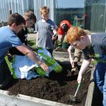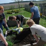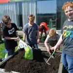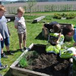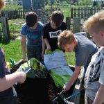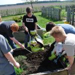 Nachdem auch der März noch recht winterlich war, haben wir erst im April nach den Osterferien die Beete angelegt und Kartoffeln, Zwiebeln, Kürbisse, Zucchini und Rharbarber gepflanzt bzw. gesät. Der viele Regen hat alles gut wachsen lassen und so haben wir in den AG-Stunden auch viel zu tun mit dem Jäten des Unkrauts.