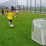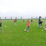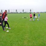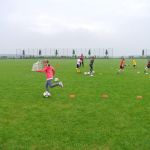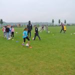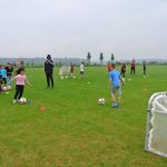 Auf den neuen Fußballplätzen trainierten zwei hauptamtliche Fußballtrainer mit den beiden 3. Klassen. Dass sich an diesem Tag die Sonne nicht zeigte, sondern es regnete, tat der Begeisterung bei den Kindern absolut keinen Abbruch. Die Jungen und Mädchen der beiden Klassen bekamen jeweils gemeinsam eine Trainingseinheit und wurden so gut motiviert, dass ihnen der Regen nichts ausmachte. Am Ende der Veranstaltung überreichten die beiden Trainer einige kleine Präsente für die Kinder.