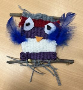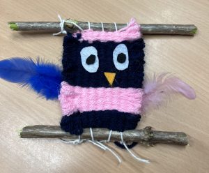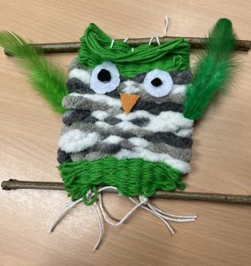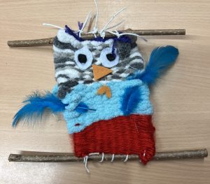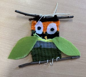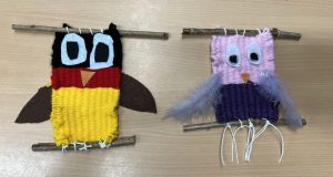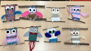 Web-Eulen haben nichts mit dem Web oder Internet zu tun – sondern mit dem Unterricht in Textilem Gestalten der Klasse 4c! Bunte Wolle, ein kleiner Webrahmen, ein paar Zweige aus dem Garten, Federn und Filz, daraus entstanden diese süßen Web-Eulen!